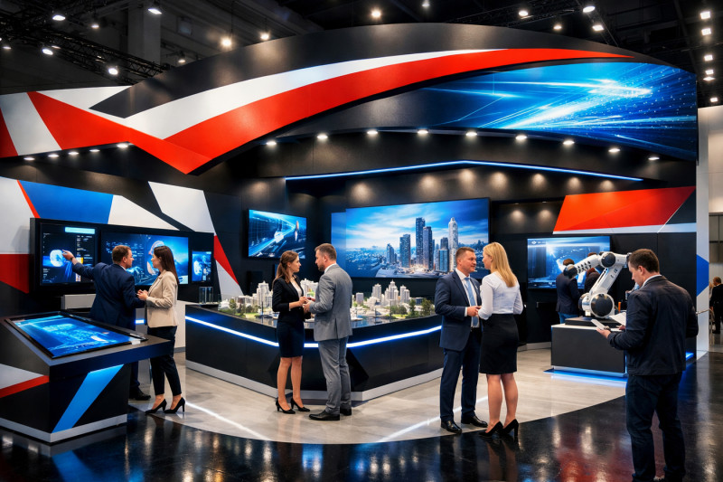 Одним из важных элементов концепции является главный визуальный акцент. Это может быть крупное изображение, необычная форма конструкции, выразительная графика или сильный цветовой контраст. Акцент помогает привлечь внимание и делает стенд заметным даже в насыщенной выставочной среде.