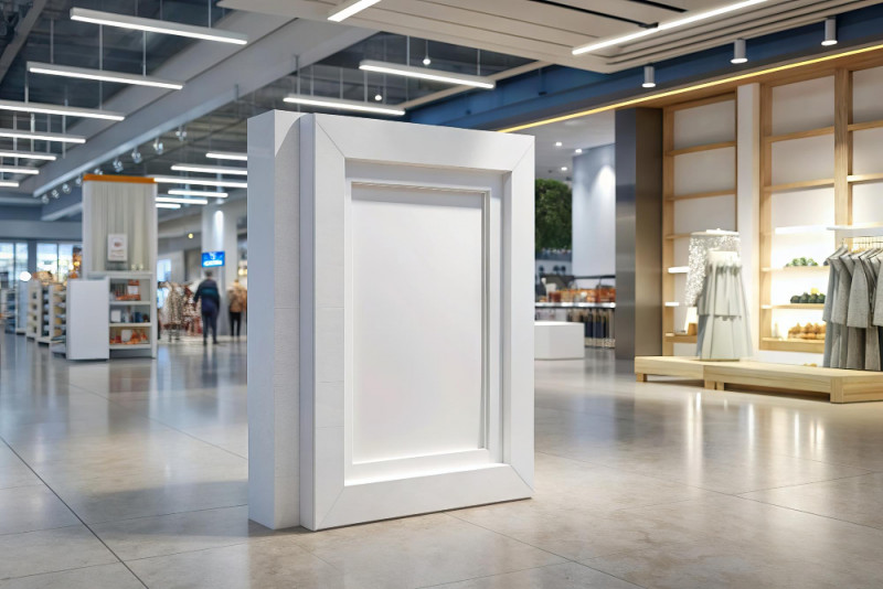 В торговом центре место стенда играет ключевую роль. Посетители чаще всего видят его боковым зрением, проходя мимо. Поэтому важно, чтобы стенд был заметен с расстояния и не перекрывался архитектурными элементами ТЦ.