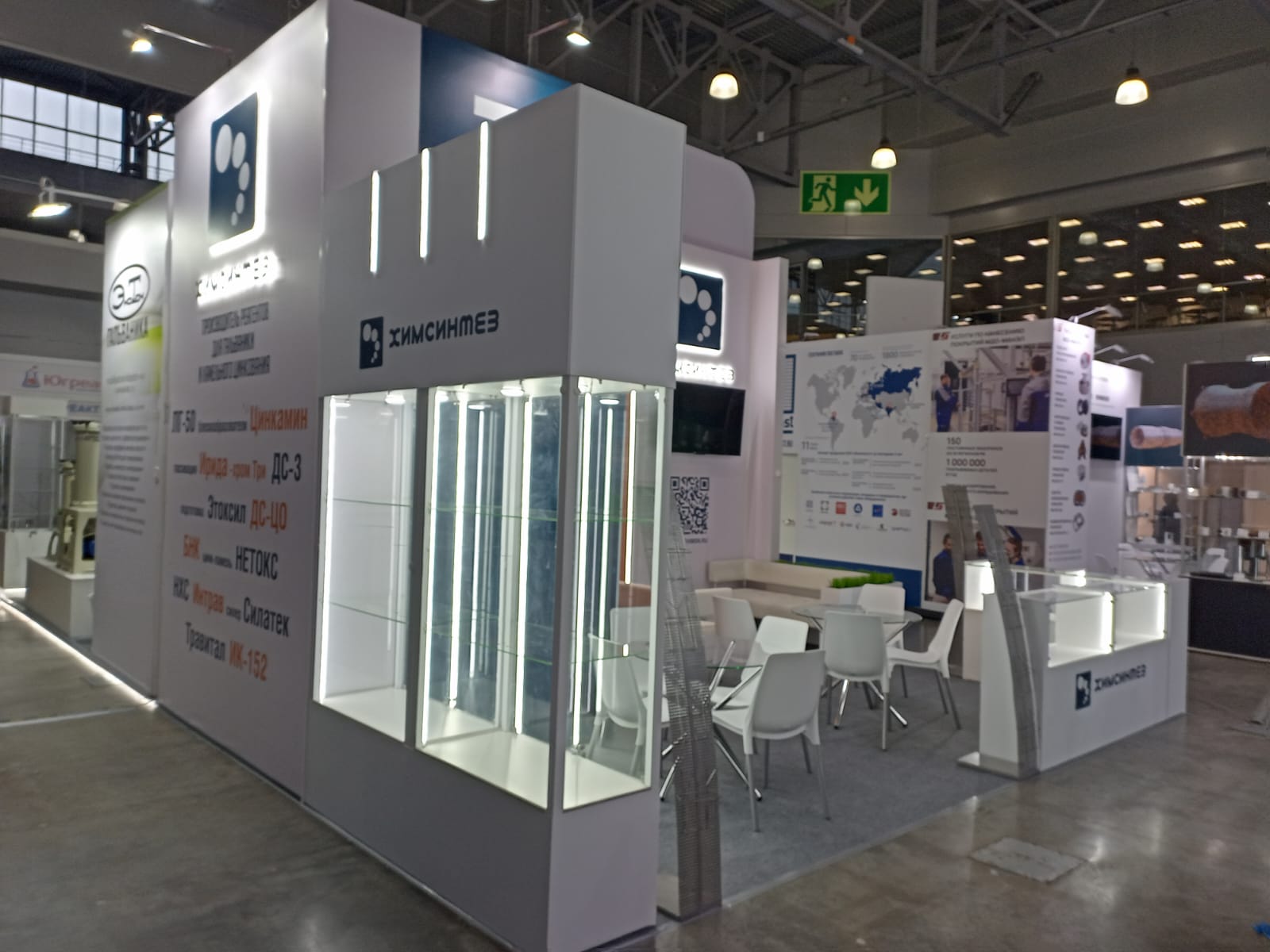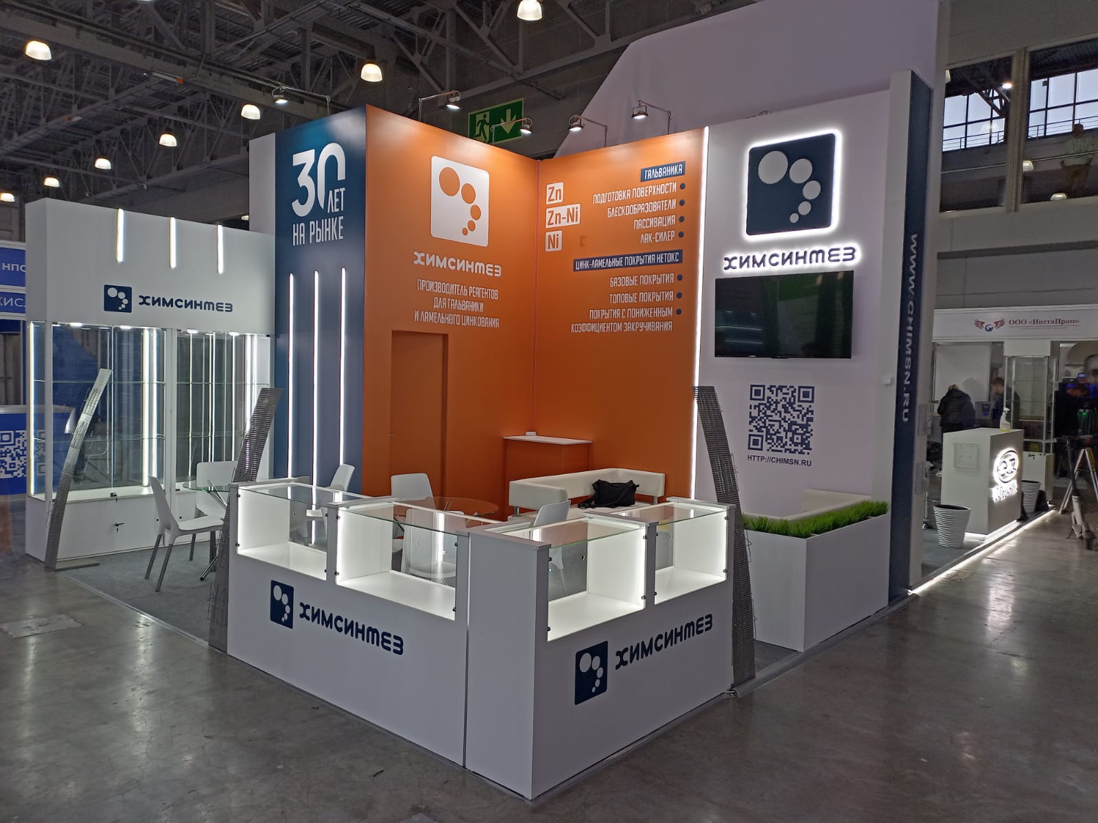 Для участия компании «Химсинтез» в международной выставке «Expocoating 25» - выставке материалов и оборудования для обработки поверхностей, нанесения покрытий и гальванических производств, мы разработали и застроили выставочный стенд площадью 27 кв.м. Выставка проходила в МВЦ «Крокус Экспо» с 21 по 23 октября 2025 г.