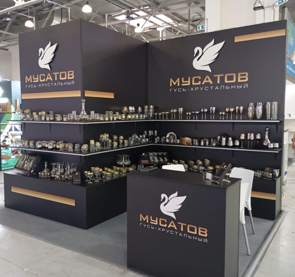 Компания «ИП Мусатов» занимается продажей посуды уже около 20 лет. На выставке «HouseHold Expo 2025» - крупнейшей выставке на территории России и Восточной Европы товаров для дома «ИП Мусатов» продемонстрировало широкий ассортимент посуды из стекла и хрусталя, а так же декорированной посуды путем гравировки золотом, платиной. Для участия компании в выставке мы разработали и застроили выставочный стенд площадью 12 кв.м.