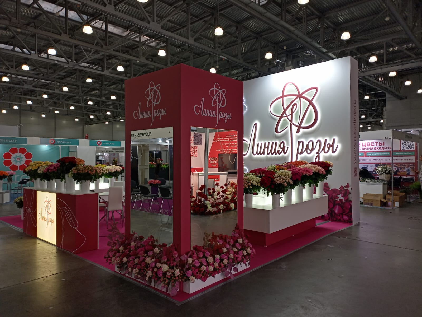 15-я международная выставка цветов, растений, техники и технологий для цветоводства и ландшафтного дизайна «Цветы Экспо 2025» проходила в Москве в МВЦ «Крокус Экспо» с 8 по 10 сентября 2025г. Для участия в выставке Подмосковной компании «Линия розы» , которая занимается выращиванием на срез ежегодно свыше 38 млн штук роз, мы разработали и застроили яркий и стильный выставочный стенд площадью 48 кв.м.