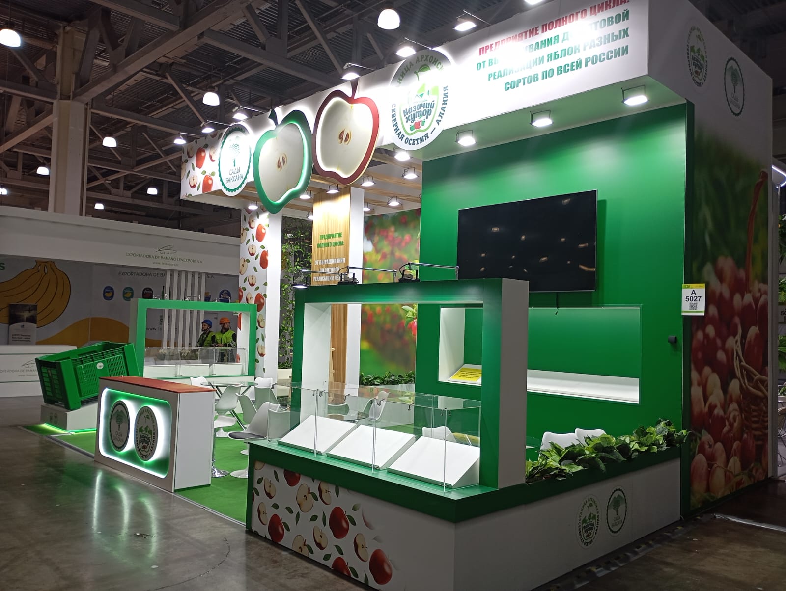 Для участия ООО «Казачий хутор» в 35-ой Международной выставке продуктов питания «World Food 2025», которая проходила с 15 по 18 сентября 2025г. в МВЦ Крокус мы разработали и застроили красочный и функциональный площадью 54 кв.м. Сельскохозяйственное предприятие с поэтическим названием ООО «Казачий хутор» занимается садоводством интенсивного типа по выращиванию яблок. Сады находятся в Предгорном районе Северной Осетии.