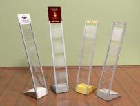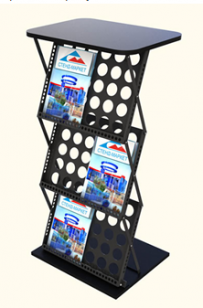 Какие виды буклетниц существуют? 15.08.2015На выставке или презентации трудно обойтись без различных журналов, брошюр и другой полиграфической продукции. Именно для этой цели и существует буклетница, на которой и располагается данный печатный материал. Буклетницы имеют разные модификации и отличаются друг от друга особенностями конструкции и размерами. Каждая из них служит для определенных целей в размещении печатной продукции.