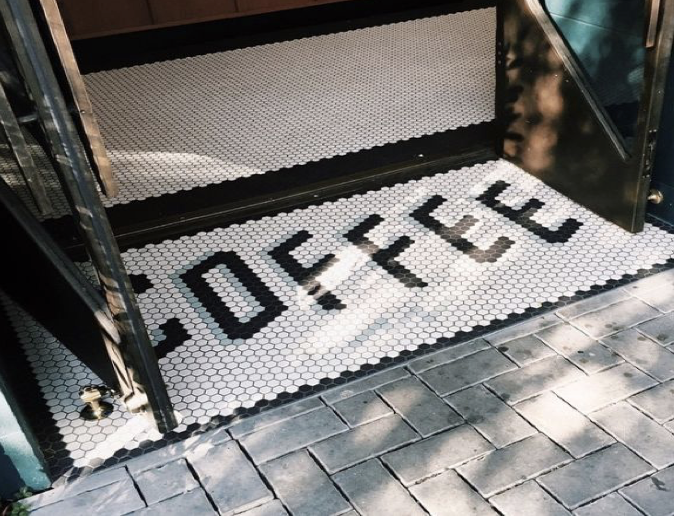 Другой довольно успешный прием – вывеска под ногами. Владельцы кофейни сыграли на извечном нежелании людей слишком явно оглядываться по сторонам и поднимать взгляд вверх. Результат – шикарный «коврик» из черно-белой плитки на входе в кофейню.