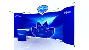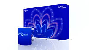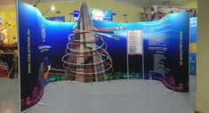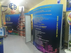 Конструкция стенда позволяет закрепить на ней светильники, объемный логотип, ЖК-панель, световой короб, вращающийся элемент, что позволяет сформировать полноценный выставочный стенд.