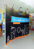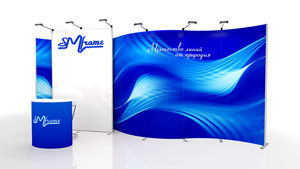 Мобильный стенд SM-Frame - это российская разработка и российское производсто. Мобильный стенд SM-Frame - конструктор с уникальными возможностями. Это стенды с изменяемой геометрией. Конструктор позволяет формировать криволинейные поверхности по горизонтали и криволинейные линии по вертикали.
