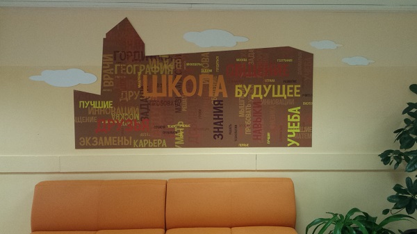 Оформление холла школы. Декорирование помещений и обустройство рекреационных зон школы. ГБОУ города Москвы "Школа № 1985" в Северо-Западном административном округе в муниципальном образовании Куркино.